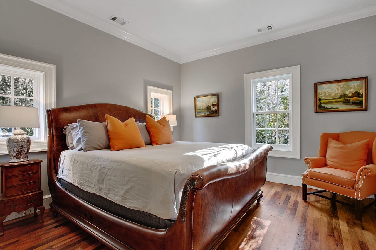 | An English Cottage Estate sited on one of the largest lakefront lots at Henry Ford’s former retreat, The Ford Field and River Club. European design of the main residence offer sophistication in this low country setting planted with varieties of year round blooms. Natural borders and a winding drive offer privacy, while water and golf course views are offered from the main residence. Heart of pine floors are found throughout the home, suited for entertaining. The large living room and library open to walls of glass overlooking the expansive grounds. A sunroom, perfect for dining, commands views of the water. Downstairs you will find a bedroom suite as well as a extensive service areas for the bustling family or entertainers. Upstairs, all bedrooms are ensuite, along with a sitting room. The master features a marble bath, steam shower and private terrace. | |